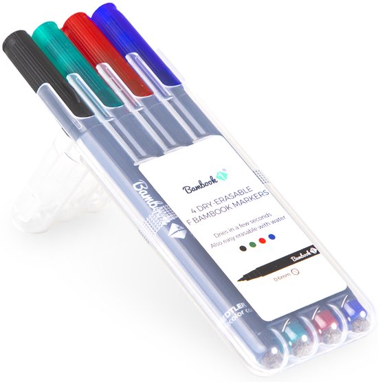 Bambook Stiftenset 4 kleuren: zwart, blauw, groen, rood - Schrijfdikte 1mm (M) - De uitwisbare pen voor jouw Bambook notitieboek