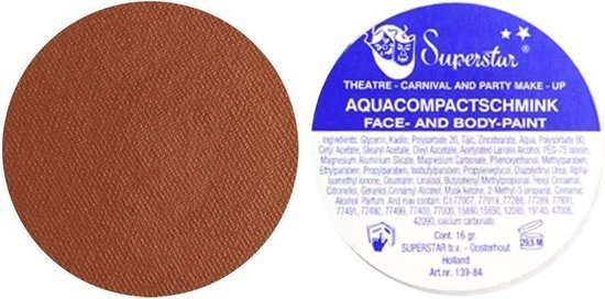 Superstar schmink cerise. Deze superstar schmink cerise is te gebruiken op gezicht en op lichaam. De schmink is te gebruiken als een waterverf, deze is dus makkelijke afwasbaar en geschikt voor kinderen. Superstar schminken zijn onderling te vermengen. Het beste resultaat krijgt men door dunne laagjes over elkaar heen aan te brengen. De inhoud van het potje is 16 gram.