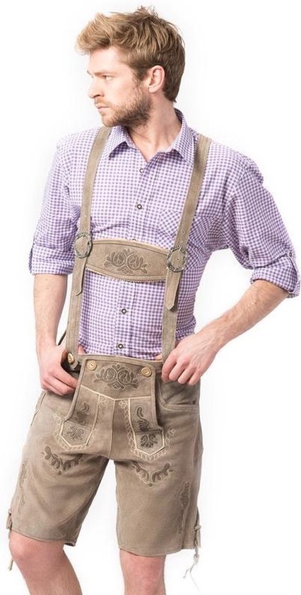 | Verpakkingsinhoud: | Lederhose van 100% leder en bijpassende bretels/hosenträger |