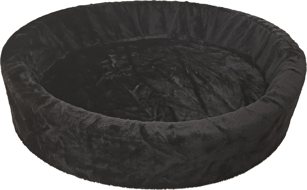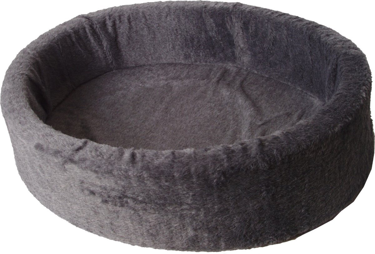 Rond honden bed met opstaande rand. De pluche hoes is afneembaar.