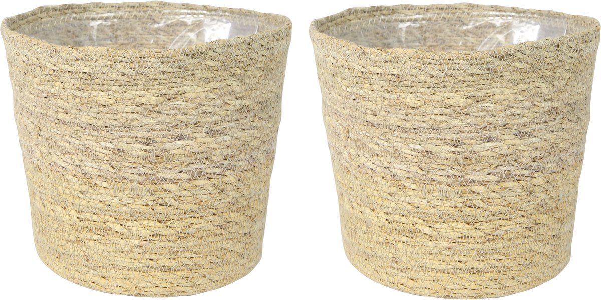 Ter Steege Plantenpot - Set van 4x stuks - beige - gevlochten zeegras - 26 x 23 cm - plastic binnenk -
