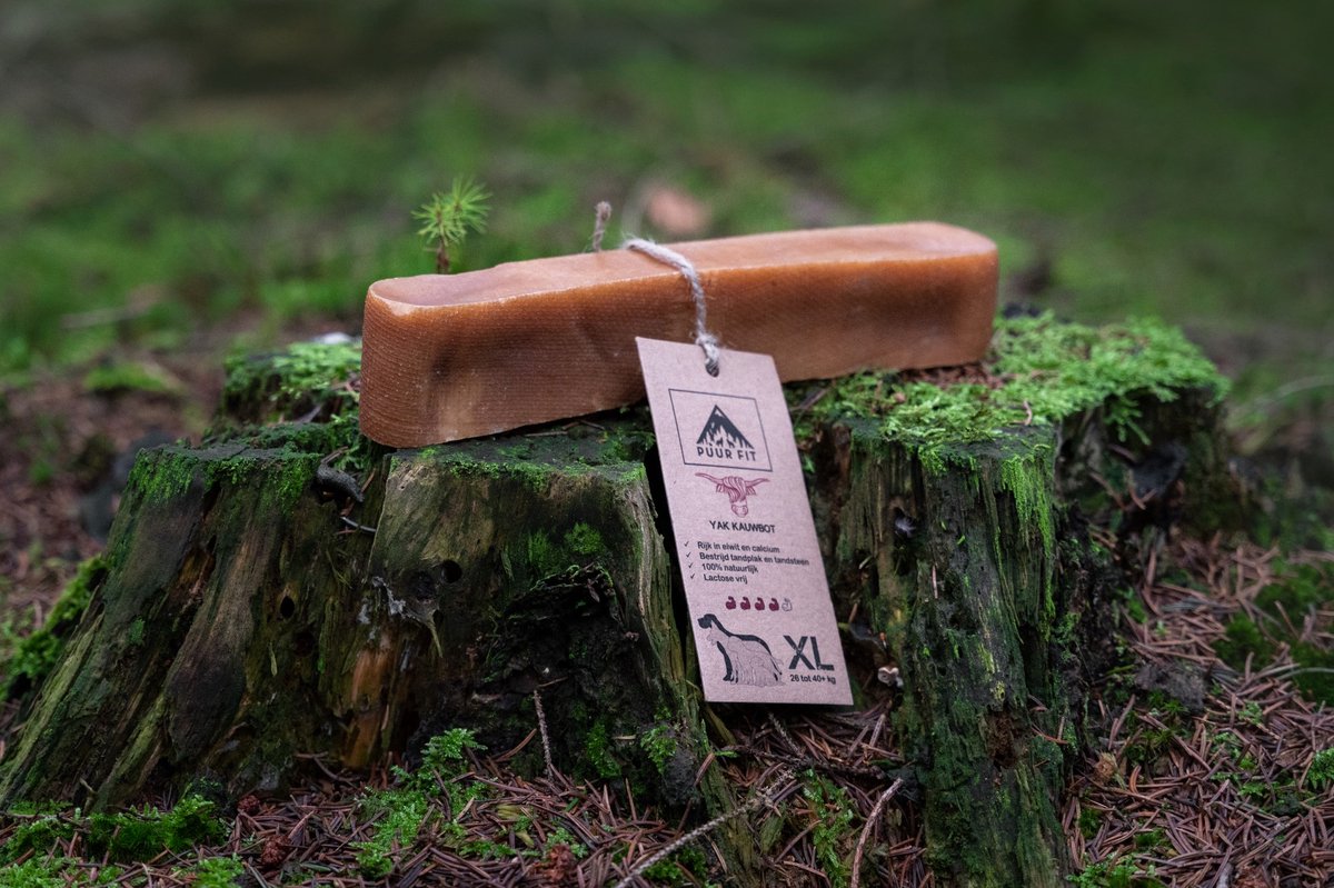 De enige echte Original Himalayan Yak kauwbot! Urenlang kauwplezier voor uw hond.De Yak's worden traditioneel gemaakt van jakmelk in de Himalaya. De yak is een rundsoort die hoog in de bergen leeft. De Yak kauwbot is heel voedzaam en bovendien erg gezond voor honden.Op traditionele wijze wordt de melk gestold, gescheiden van water en geperst in jute (de afdruk vindt u vaak nog op de kauwbotten terug). Vervolgens worden ze gerookt, wat een geweldige smaak geeft. Ten slotte wordt de Yak kauwbot schoongemaakt, ondergaat een voedselkwaliteitscontrole in het laboratorium en wordt voorzien van een gezondheidscertificaat.- Bevat geen conserveringsmiddelen- Helpt tegen tandplak en -steen- Granen- en glutenvrij- Lactosevrij- Rijk in eiwit en calcium- GeurloosEnkel onder toezicht aan uw hond verstrekken. Zorg altijd voor voldoende vers drinkwater.Wanneer uw hond genoten heeft van de yak kauwbot en er een klein stukje is overgebleven kunt u deze in de magnetron max. 1 minuut opwarmen tot het uitzet. Eenmaal afgekoeld kan uw hond de klus afmaken!Samenstelling:Yakmelk, Koemelk, LimoensapAnalytische bestanddelen:Ruw eiwit 69% Ruw vet 1% Ruwe celstof 2% Vocht 13%Koel en droog bewarenBeschikbaar in verschillende maten: Original Himalayan Yak Kauwbot is een natuur product, dus de maten kunnen afwijken.Small = 8 cm – 35 gramMedium = 12 cm – 75 gramLarge = 17 cm – 150 gramExtra Large = 19 cm – 200 gram
