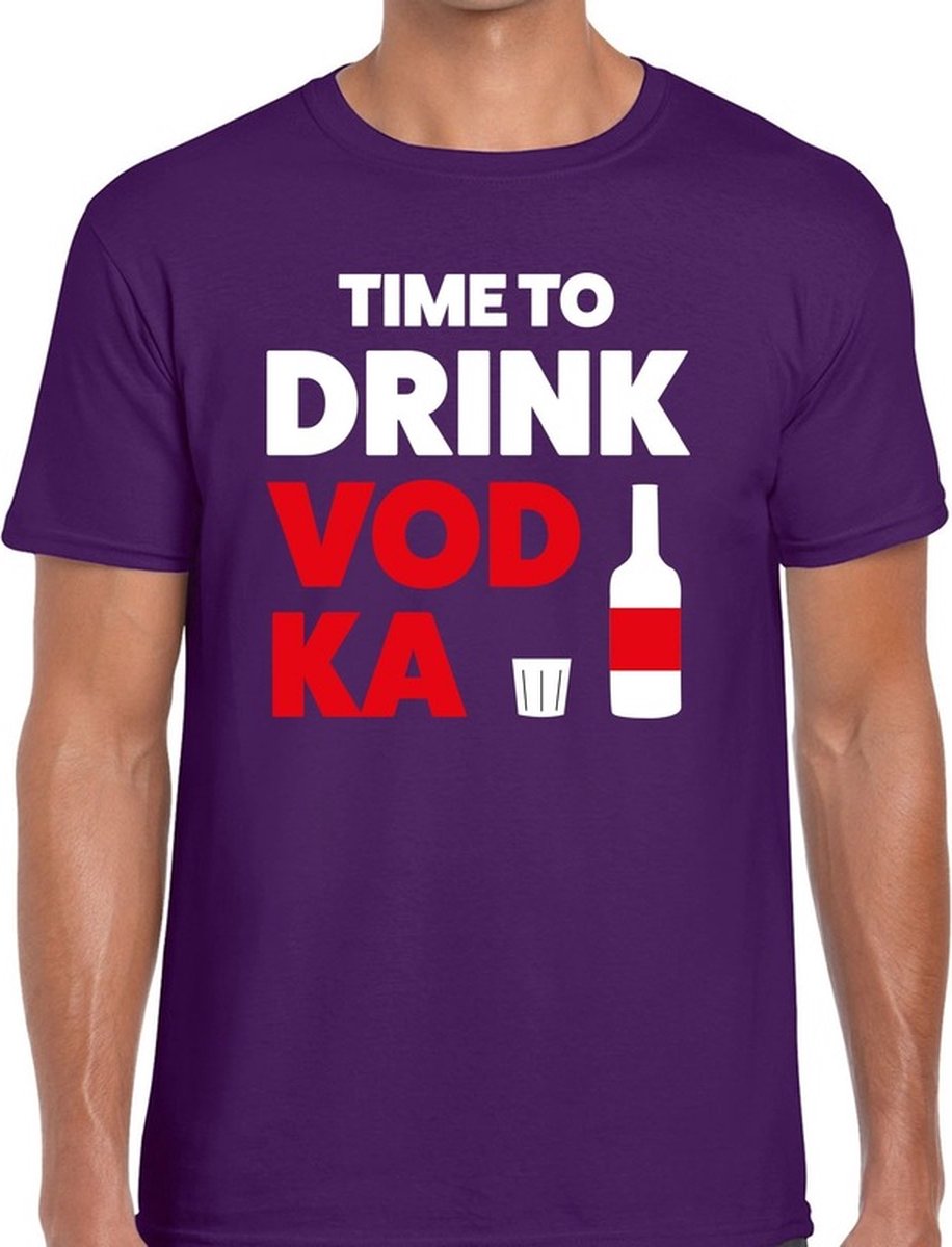 Time to drink Vodka tekst t-shirt paars voor heren. Op dit paarse shirt staat groot de tekst Time to drink Vodka. Materiaal: 150 grams, 100% katoen.