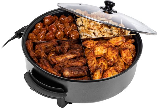 De Tristar PZ-2963 Hapjespan is een elektrische hapjespan met vijf verschillende temperatuurstanden waarmee je allerlei soorten gerechten kunt maken: van paella tot aardappeltjes en van gehaktballetjes tot nasi. Dankzij de anti-aanbaklaag bakt de pan niet aan en kun je hem na gebruik heel gemakkelijk schoonmaken.