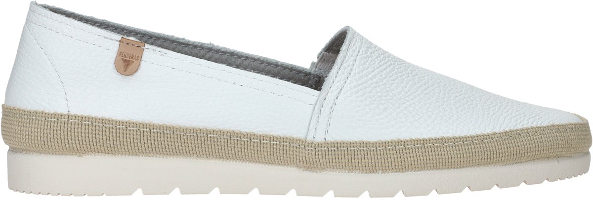 Wie denkt aan de zon en die heerlijke zomerse dagen, denkt aan luchtige kleding en fijne espadrilles. Het merk VERBENAS is op en top Spaans en weet als geen ander hoe een espadrilles moet aanvoelen. Zij maken al hun modellen op ambachtelijke authentieke wijze en dat is te zien. Zo ook dit zilverkleurige model NOA van zacht en soepel structuurleer met een binnenwerk van suède in combinatie met een voetbed van leer. Het vaste voetbed is voorzien van een dempende onderlaag van schuim waardoor de espadrille nog comfortabeler is en jij er de hele dag op kunt lopen. Opvallende details zijn het opgestikte touw langs de gehele zoolrand van de schoen en het cognackleurige, driehoekige leren merklabel met aantreklus op de hiel. De witte rubberen zool is superflexibel door de diepe groeven en het soepele materiaal en zorgt voor veel comfort en grip bij lange wandelingen. Trek ze snel aan en ga eropuit, want met deze fijne espadrilles wil jij gewoon naar buiten en slenteren door de stad of gezien
