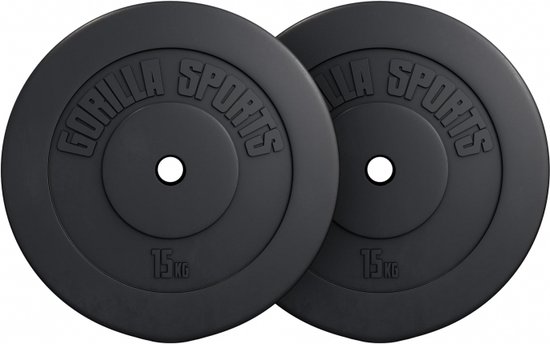 Gorilla Sports Halterschijven Set - Bundel - 30 kg (2 x 15 kg) - Kunststof - 30 mm