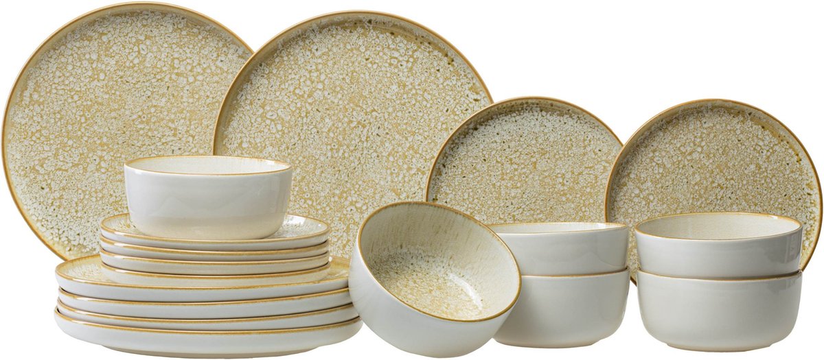 De Villeroy & Boch Crafted heeft een rustieke vintage-look in handmade-design. Elk stuk is uniek! Door het gebruikte reactieve glazuur ontstaan er unieke kleurpatronen die elk artikel tot een unicaat maken. De set bestaat uit: