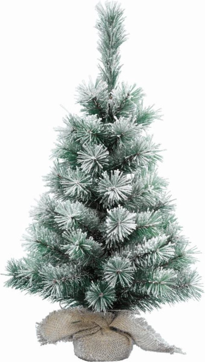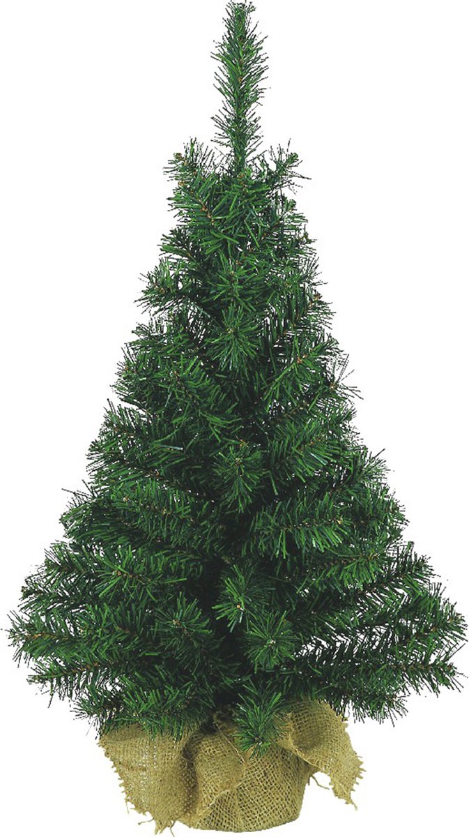 Volle mini kerstbomen groen in jute zak met verlichting inclusief timer 90 cm. Kunst kerstboompje met 50 LED lampjes en zonder versiering. De boom heeft 118 takken en is inclusief jute zak en verlichting. De verlichting werkt op 3 AA batterijen, deze worden niet meegeleverd. Aantal kerstboompjes: 1x.