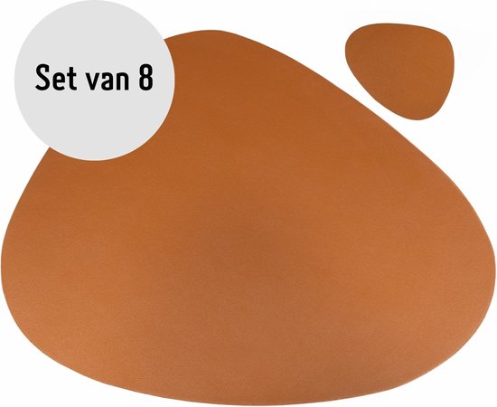 Krumble Placemat en onderzetter - 8 stuks - Design placemat set met onderzetter - Bruin