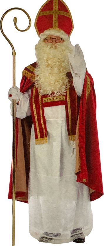 Witbaard SinterklaaskostuumVerkleed jij je dit jaar als sinterklaas? Dan is dit kostuum daar helemaal perfect voor! Het kostuum bestaat uit een mantel, een mijter, een onderjurk, losse paarse rok en een stola.Specificaties:Kleur: rood/witGeslacht: unisexMateriaal: katoen/fluweelMaat: one-sizeInhoud:1 Mantel1 Mijter1 Onderjurk1 Stola1 Losse rok
