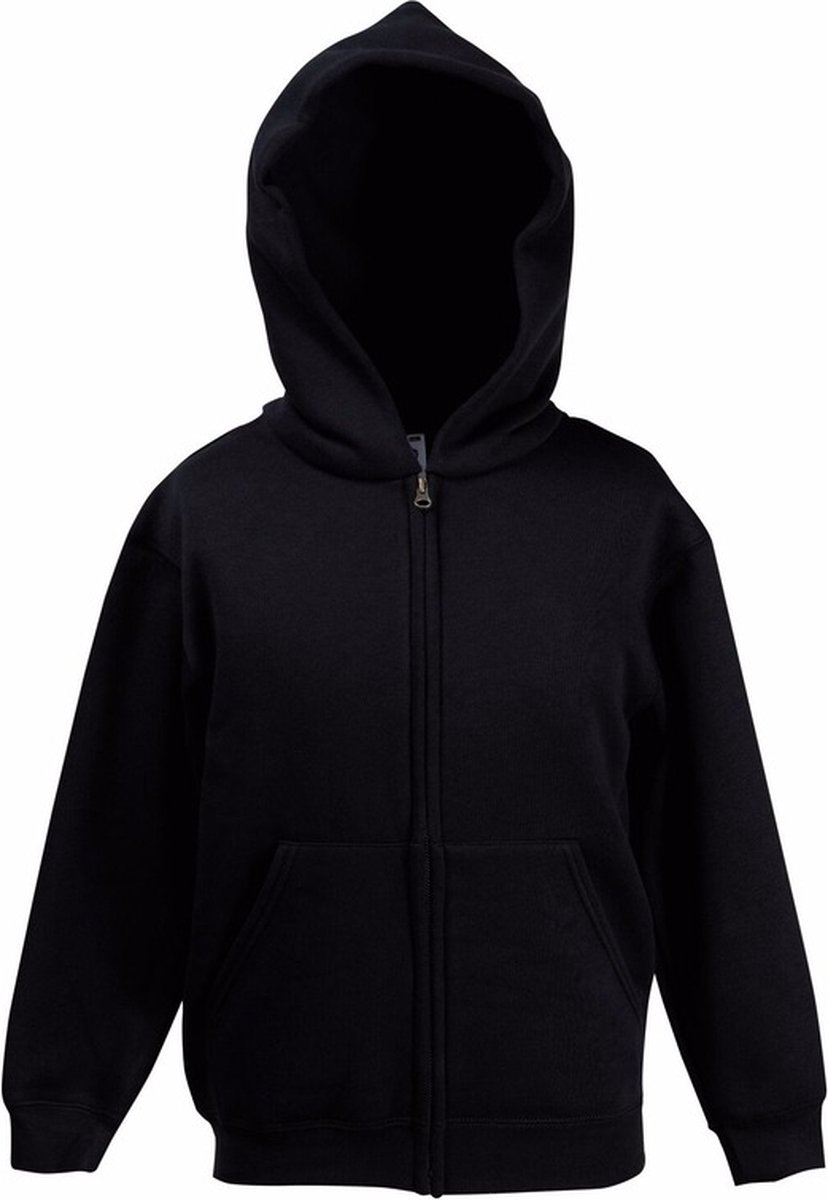 Zwart katoenmix vest met capuchon voor jongens. Zwarte capuchonsweater/capuchonvest met rits voor jongens. Het vest heeft een gevoerde capuchon zonder trekkoord en een doorlopende rits en twee steekzakken aan de voorzijde.