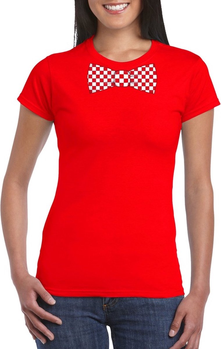 Zwart t-shirt met geblokte Brabant strik voor dames M -