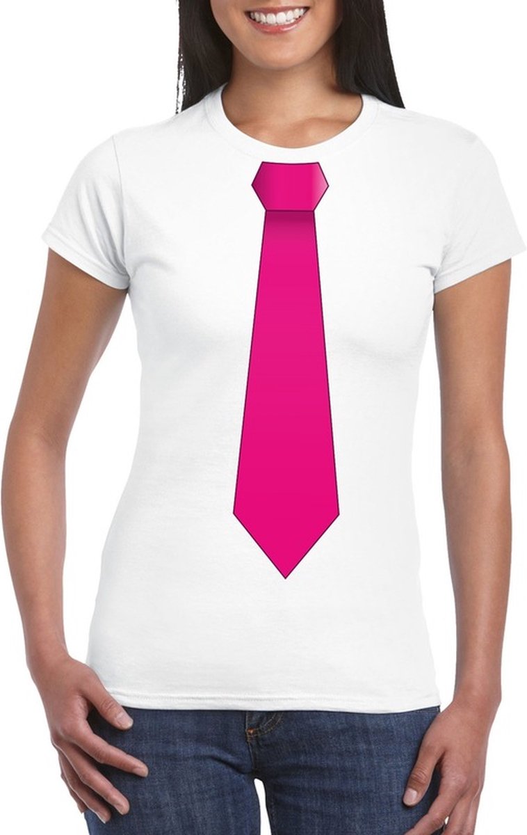 Zwart t-shirt met roze stropdas dames. Materiaal: 150 grams, 100% katoen. Voordelen van dit artikel Dames shirt met feestelijke bedrukking Shirtjes met goede pasvorm, gemaakt van katoen Onze dameskleding met print is goed wasbaar op lage temperatuur Kenmerken Merk: Bellatio Decorations Materiaal: Katoen Kleur: Zwart Doelgroep: Volwassenen Bellatio Decorations Laat je verassen door het uitgebreide assortiment cadeaus, feestversiering, decoraties, verkleedspullen en foute party outfits van Bellatio Decorations. Let op: dit artikel valt klein, we adviseren om 1 maat groter te bestellen.