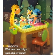 6-in-1 Giraffe Bouwtafelset met 110-delige (Grote Bouwstenen) & LED Lamp - Bouwtafel + 2 stoelen + 2 opbergdozen + 110 Bouwblokken - Studeertafel, Speeltafel, Kinder tafel- en stoelenset - Constructie Activiteiten Tabel compatibel met DUPLO
