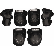 Zwarte beschermers set voor kinderen 6-8 jaar / maat M. Complete valbescherming set, bestaande uit: polsbeschermers, elleboogbeschermers en kniebeschermers voor kinderen. De beschermers hebben…