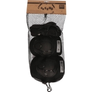 Zwarte beschermers set voor kinderen maat M / 6-8 jaar. Complete valbescherming set, bestaande uit: polsbeschermers, elleboogbeschermers en kniebeschermers voor kinderen. De beschermers hebben…