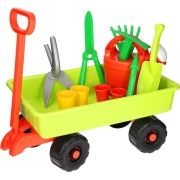 Help een handje mee in de tuin met deze bolderkar met tuingereedschap. Met het gereedschap zoals een heggenschaar, een gieter, een hark, een tuinschep en verschillende emmertjes maak je de tuin weer…