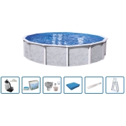 Interline zwembad Century 5,50m rond - Metaalwand zwembad - Op- en inbouw - Inclusief filterset (6m3/u)- Inclusief zwembadtrap - Gratis onderhoudsset