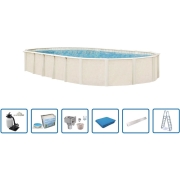 Interline zwembad Century 6,10m x 3,60m ovaal - Metaalwand zwembad - Op- en inbouw - Inclusief filterset (6m3/u)- Inclusief zwembadtrap - Gratis onderhoudsset