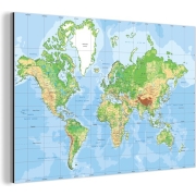 Wanddecoratie Metaal - Aluminium Schilderij Industrieel - Wereldkaart - Atlas - Topografie - 90x60 cm - Dibond - Foto op aluminium - Industriële muurdecoratie - Voor de woonkamer/slaapkamer