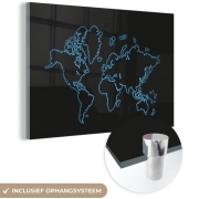MuchoWow® Glasschilderij - Wereldkaart - Blauw - Simpel - 90x60 cm - Acrylglas Schilderijen - Foto op Glas