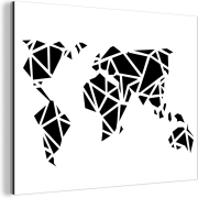 Wanddecoratie Metaal - Aluminium Schilderij Industrieel - Wereldkaart - Geometrische vormen - Zwart - Wit - 160x120 cm - Dibond - Foto op aluminium - Industriële muurdecoratie - Voor de woonkamer/slaapkamer