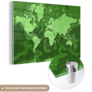 MuchoWow® Glasschilderij - Wereldkaart - Stoer - Groen - 150x100 cm - Acrylglas Schilderijen - Foto op Glas