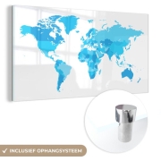 MuchoWow® Glasschilderij - Wereldkaart - Blauw - 120x60 cm - Acrylglas Schilderijen - Foto op Glas