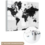 MuchoWow® Glasschilderij - Wereldkaart - Zwart - Wit - Atlas - Aarde - Educatief - 160x120 cm - Acrylglas Schilderijen - Foto op Glas