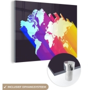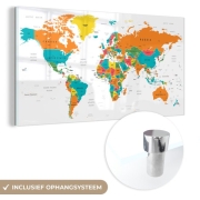 MuchoWow® Glasschilderij - Wereldkaart - Kleurrijk - Simpel - 150x100 cm - Acrylglas Schilderijen - Foto op Glas