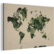 Wanddecoratie Metaal - Aluminium Schilderij Industrieel - Wereldkaart - Bladeren - Groen - 150x100 cm - Dibond - Foto op aluminium - Industriële muurdecoratie - Voor de woonkamer/slaapkamer
