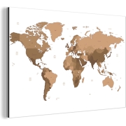 Wanddecoratie Metaal - Aluminium Schilderij Industrieel - Wereldkaart - Bruin - Topografie - 150x100 cm - Dibond - Foto op aluminium - Industriële muurdecoratie - Voor de woonkamer/slaapkamer