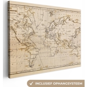 Canvas Wereldkaart - 120x80 - Wanddecoratie Wereldkaart - Vintage - Bruin