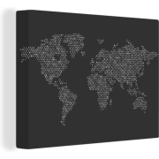 Canvas Wereldkaart - 120x90 - Wanddecoratie Wereldkaart met stippen - zwart wit
