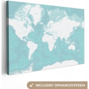 Canvas Wereldkaart - 150x100 - Wanddecoratie Wereldkaart - Atlas - Topografie