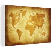 Canvas Wereldkaart - 120x90 - Wanddecoratie Wereldkaart - Retro - Papyrus