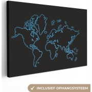 Canvas Wereldkaart - 150x100 - Wanddecoratie Wereldkaart - Topografie - Blauw