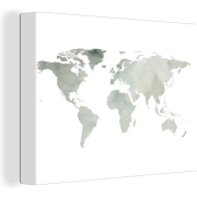 Wanddecoratie Wereldkaart - Groen - Wit - Canvas - 120x90 cm