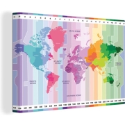 Canvas Wereldkaart - 120x80 - Wanddecoratie Wereldkaart - Spetters - Kleuren