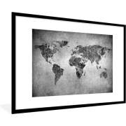 Fotolijst incl. Poster - Wereldkaart - Grijs - Patroon - 90x60 cm - Posterlijst
