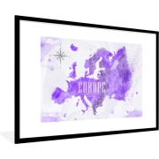 Fotolijst incl. Poster - Europa - Wereldkaart - Verf - 90x60 cm - Posterlijst