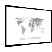 Fotolijst incl. Poster - Wereldkaart - Waterverf - Grijs - 120x80 cm - Posterlijst