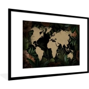 Fotolijst incl. Poster - Wereldkaart - Tropische planten - Bruin - 120x80 cm - Posterlijst