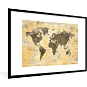 Fotolijst incl. Poster - Wereldkaart - Krant - Gouden - 120x80 cm - Posterlijst