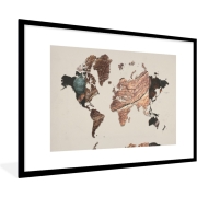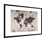 Fotolijst incl. Poster - Wereldkaart - Vintage - Bruin - 90x60 cm - Posterlijst