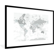 Lijst - Poster - Wereldkaart - Wit - Grijs - Aarde - FotolijstDeze mooie poster past goed in de woon- of slaapkamer! Productkenmerken De poster is van…