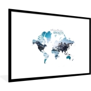 Fotolijst incl. Poster - Wereldkaart - Quotes - Berg - 90x60 cm - Posterlijst