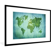 Fotolijst incl. Poster - Wereldkaart - Groen - Waterverf - 90x60 cm - Posterlijst