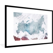 Fotolijst incl. Poster - Rusland - Wereldkaart - Verf - 90x60 cm - Posterlijst