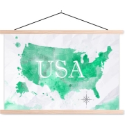 Textiel poster - Wereldkaart - Waterverf - Verenigde Staten - Posterhanger Deze bijzondere poster past goed in de woonkamer of (kinder)slaapkamer! Productkenmerken…